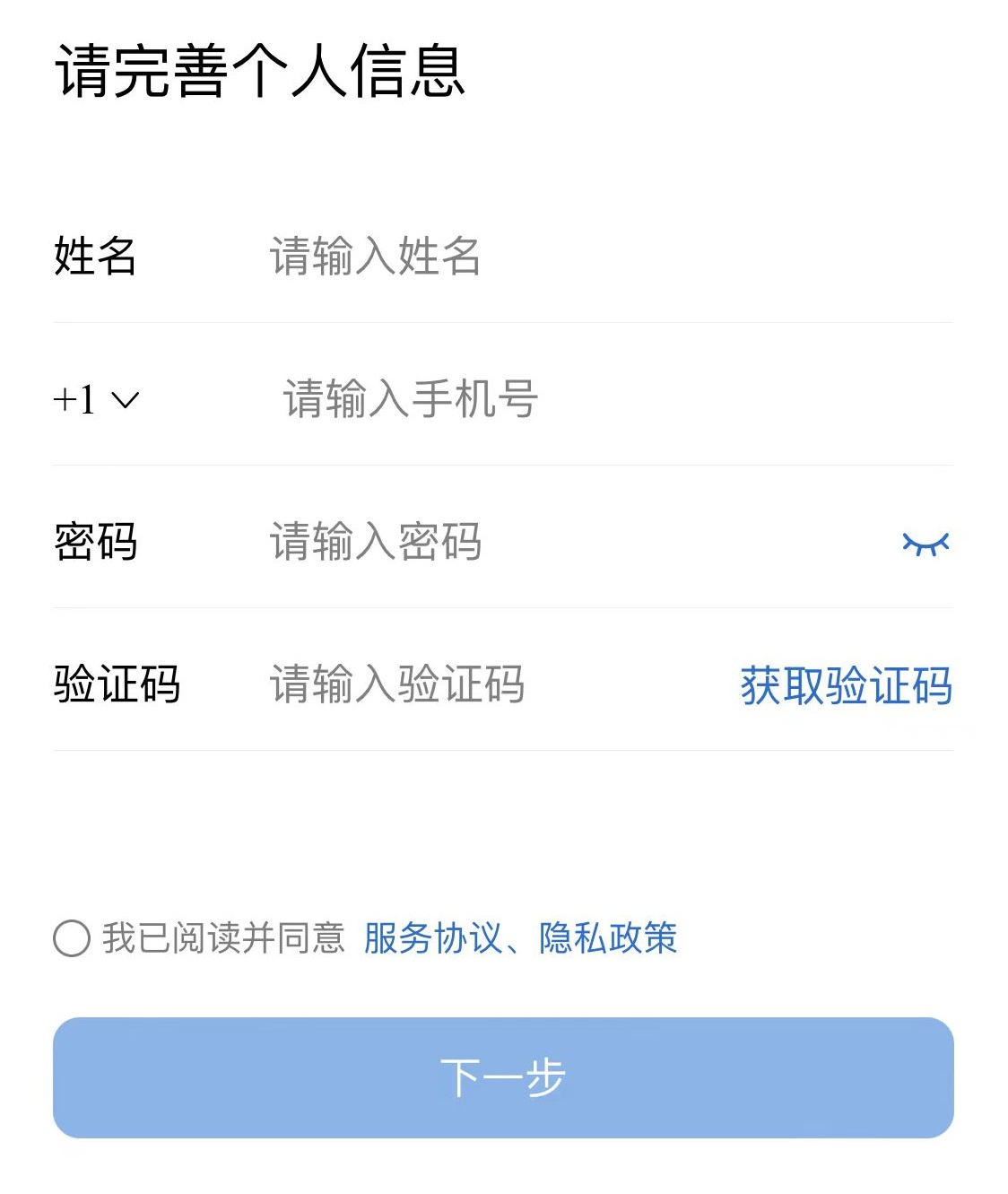 填入姓名、手机号、密码及短信验证码,点击保存即可完成