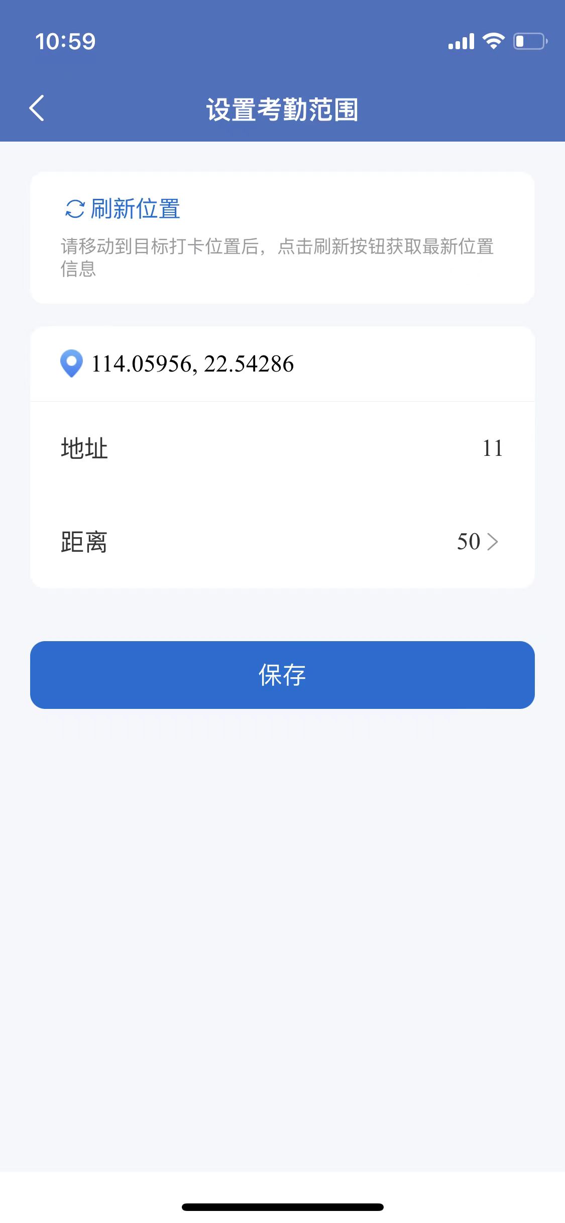 管理-考勤范围,刷新位置,填入地址和距离即可