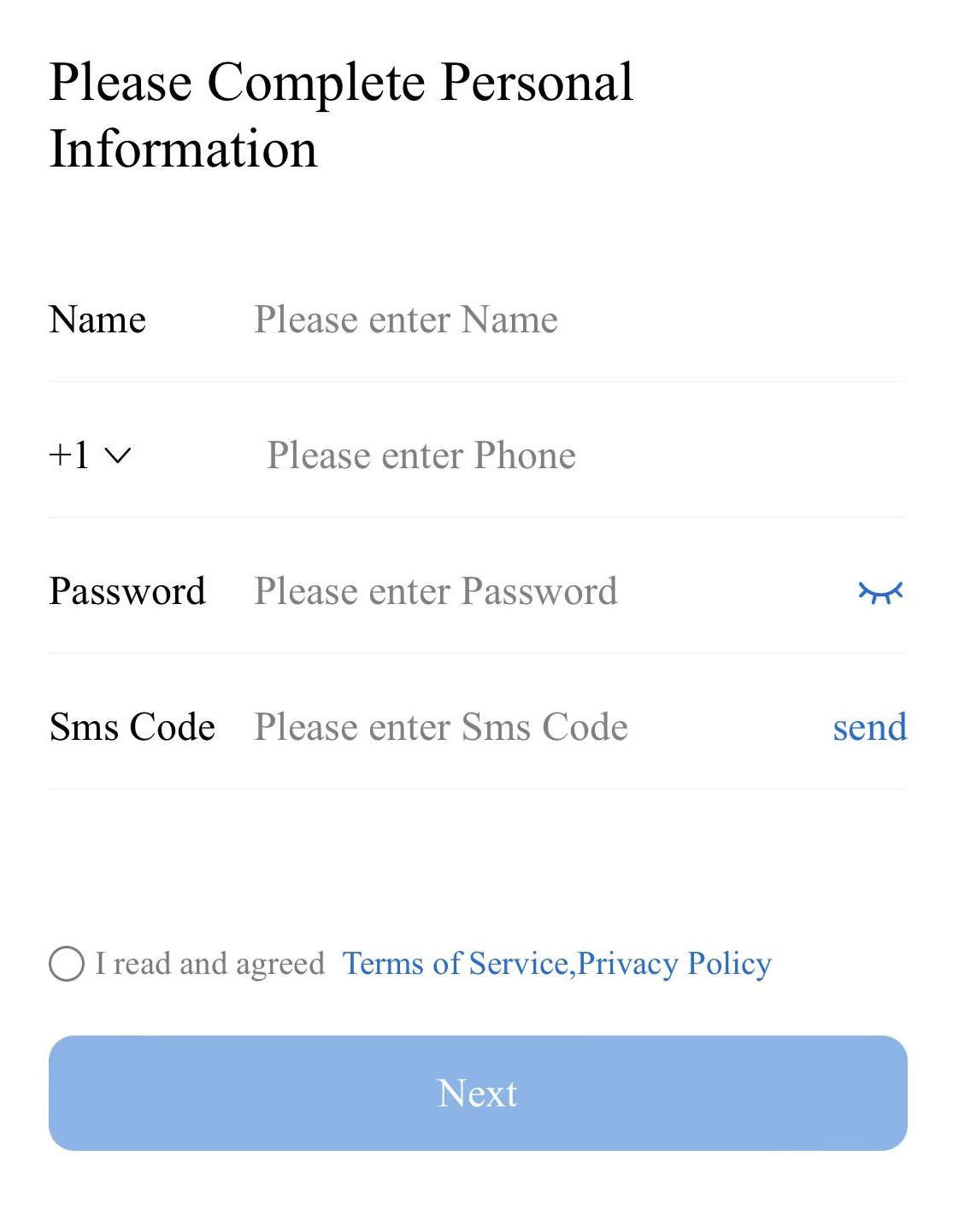 Fill in your name, mobile phone number, password and SMS verification code, and click Save to complete