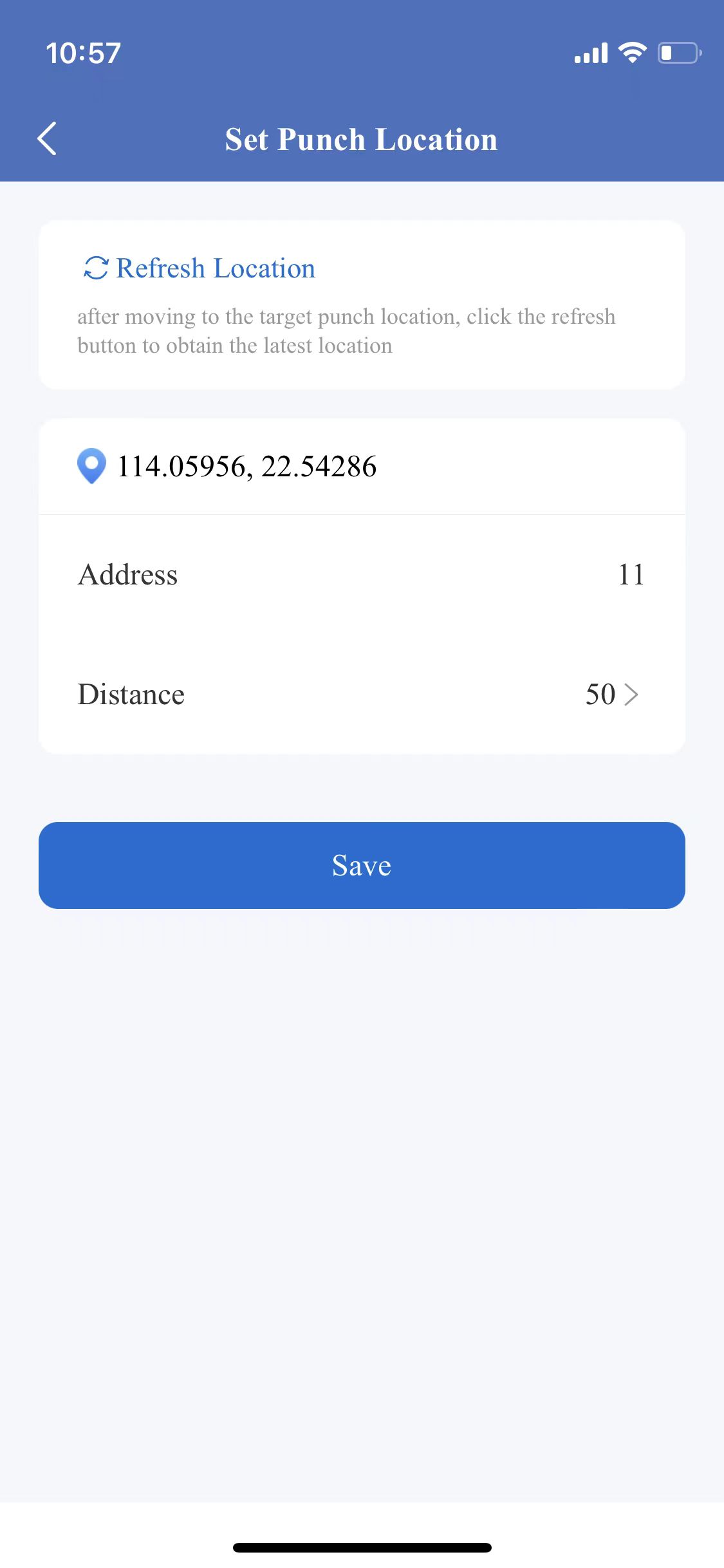 Manage-Punch Range, refresh the location, fill in the address and distance