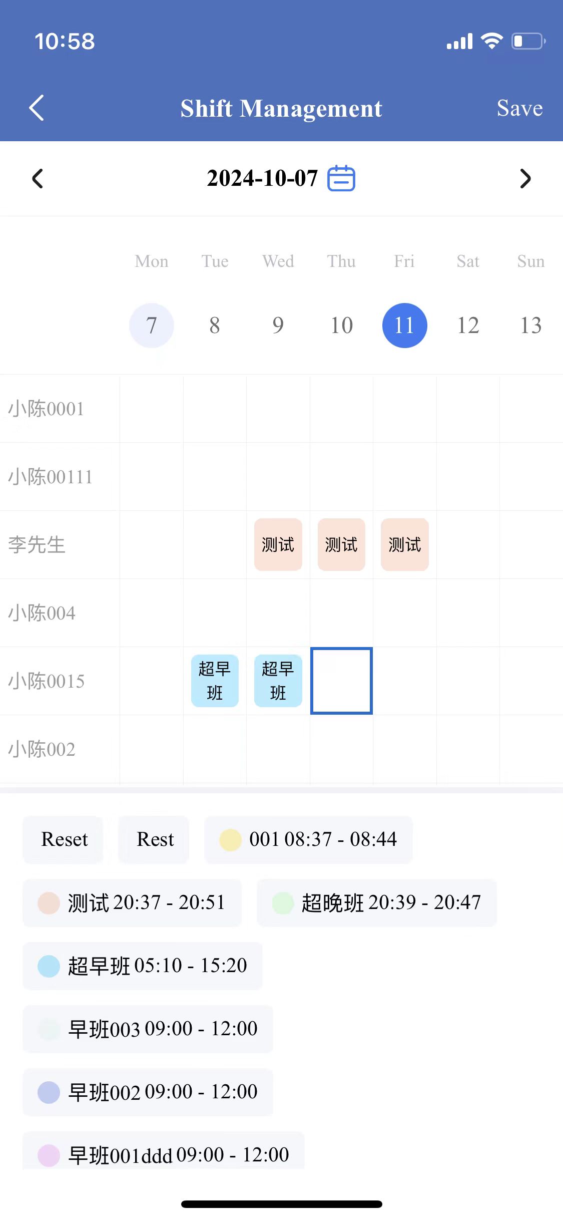 Manage-Shift Schedule, set corresponding personnel schedule information